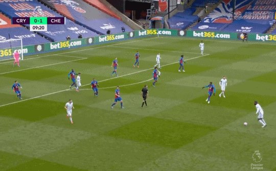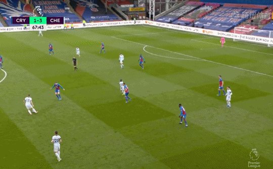 10'奇尔韦尔直传肋部,哈弗茨倒三角横传,普利西奇左脚破门,水晶宫0-2切尔西!